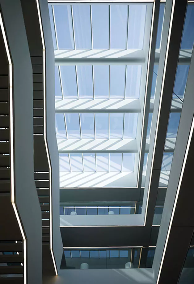 The modular skylights enable fast and intuitive design when multiple rows are simply put together to cover the atrium – big or small.