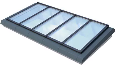 VELUX modular skylight system is a turnkey solution comprising prefabricated skylight modules with dedicated claddings, flashings and vapour barrier connection strip to allow for design of watertight rooflight and glass roof structures.