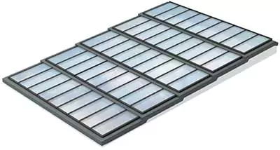 VELUX modular skylight system is a turnkey solution comprising prefabricated skylight modules with dedicated claddings, flashings and vapour barrier connection strip to allow for design of watertight rooflight and glass roof structures.